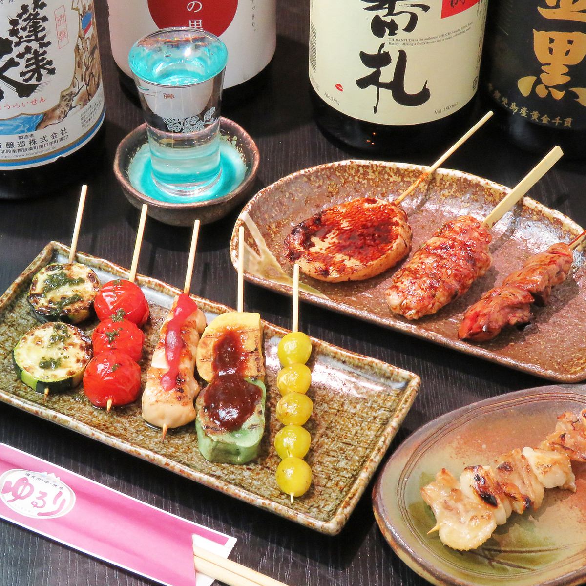 当店人気のコース料理。サラダ・酢の物・串焼き(3種)・串揚げ(2種)・串肉巻き(2種)・一品・〆・デザートの全8品でリーズナブルな価格とさせていただいております。〆にはざるそばやお茶漬けなどになります。プラス2200円で飲み放題をつけることも可能です♪ネット予約ではご希望来店日の3日前まで受け付けております。